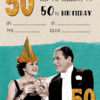 Flat Party Invitation, on white board with multi coloured foil and emboss