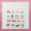 Flat Party Invitation, on cream and white board with multi coloured foil and emboss