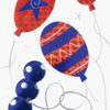 Flat Party Invitation, on white board with multi coloured foil and emboss
